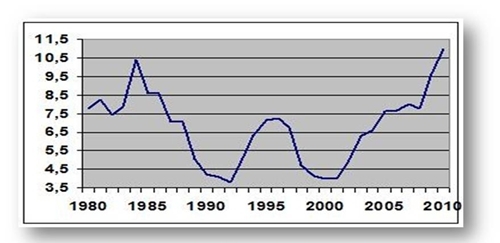 Fig.23 - Gráfico taxa de desemprego 1980 a 2010