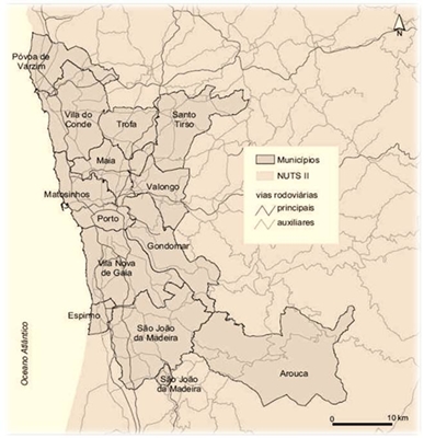 . Espinho . Gondomar . Maia . Matosinhos . Oliveira de Azeméis . Porto . Póvoa de Varzim . Santa Maria da Feira . Santo Tirso . São João da Madeira . Trofa . Vale de Cambra . Valongo . Vila do Conde . Vila Nova de Gaia Actividades Económicas As actividades económicas constituem um excelente indicador do pulsar das cidades. O perfil de especialização, os padrões de localização das empresas e o posicionamento nos mercados internacionais reflectem as oportunidades que as aglomerações urbanas criam às pessoas. AML Deste ponto de vista, a área metropolitana de Lisboa tem uma série de vantagens únicas ao nível nacional: . capital do país, . principal acumulação geográfica de recursos estratégicos para o desenvolvimento, . atracção de pessoas e actividades qualificadas de outros países, . presença relevante em redes supranacionais de cooperação e intercâmbio. De facto, a área metropolitana de Lisboa representa um pólo de actividade económica e de consumo de valia internacional, desempenhando um papel fundamental de intermediação entre o nosso país e o mundo. É considerada a maior concentração empresarial do país. Em 1991 encontravam-se registadas 70 716 sociedades nos concelhos da área metropolitana de Lisboa, isto é, cerca de 40% do total do país. Mais tarde, no ano de 1998, existiam quase já cerca de 100 000 sociedades. Estas eram responsáveis por 926 272 postos de trabalho (perto de 40% do emprego nacional neste tipo de entidades). A dimensão empresarial da AML é ainda mais evidente em termos de produção. Vejamos que a sua produtividade por trabalhador é quase 28% superior à média do país. Por outro lado, o facto de a área metropolitana de Lisboa incluir cerca de 2.5 milhões de habitantes e deter um PIB per capita 40% mais alto do que a média nacional revela que se trata de um importante pólo de consumo, favorável à expansão dos mais diversos tipos de actividades económicas.