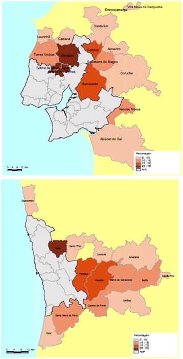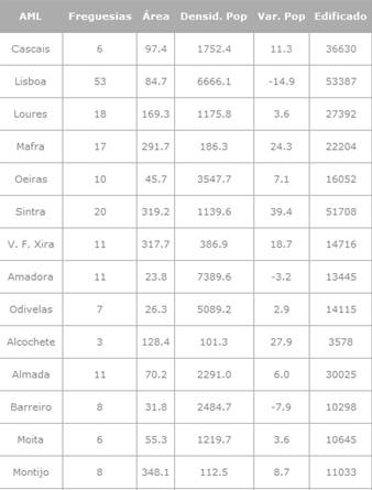 são mais intensas na Área Metropolitana de Lisboa, verificando-se que em
