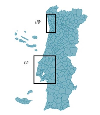 Figura 1. Localização das áreas metropolitanas portuguesas, a nível nacional Características … ... da AML: . Tem sede na cidade de Lisboa; . Engloba 18 municípios da Grande Lisboa e da Península de Setúbal; . Maior centro populacional do país, com 2 819 433 habitantes (2008), o que equivale a cerca de 25% da população portuguesa; . Representa 3.3% do território nacional; . Contém 30% das empresas nacionais; . Oferece 33% do emprego nacional;