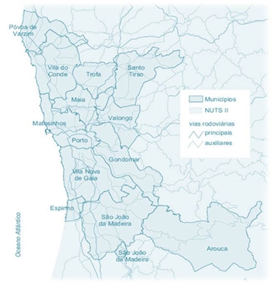 … da AMP: . Tem sede na cidade do Porto . Engloba 16 concelhos entre o Grande Porto, o Entre Douro e Vouga . Tem 1 684 901 de habitantes (em 2009) . Tem 2.089 km² de área . Tem densidade populacional próxima de 875 hab/km²
