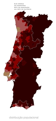 Como é óbvio pelo que podemos observar no mapa ao lado, a população portuguesa concentra-se: . No litoral . Principalmente nas áreas metropolitanas de Lisboa e do Porto