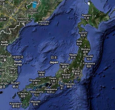 Figura 1 – Localização geográfica do arquipélago do Japão Principais aglomerações populacionais Ocupa o 10º lugar da lista das nações com mais população, uma vez que vivem cerca de 128 milhões de japoneses no território. Existe também uma grande densidade populacional nas três maiores aglomerações japonesas, Tókio, Osaka-Kobe e Nagóia. É nestas três cidades que se concentra cerca de 50% da população total. A elevada densidade populacional pode ser explicada pela herança de um sistema de produção agrícola baseado na rizicultura e pelo recente crescimento demográfico. As cinco cidades mais populosas do Japão são, segundo o censo de 2005 e por ordem decrescente de população: 1. Tóquio, com 8 483 050 habitantes; 2. Yokohama, com 3 579 133 habitantes; 3. Osaka, com 2 628 776 habitantes; 4. Nagoya, com 2 215 031 habitantes; 5. Sapporo, com 1 880 875 habitantes.
