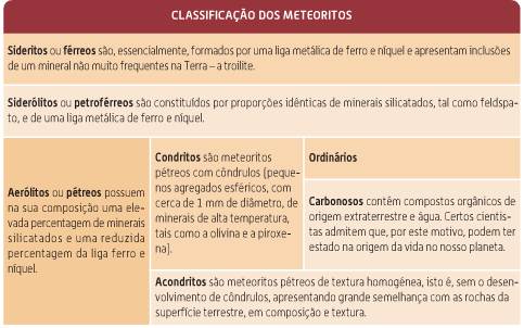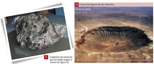 Meteoritos Meteoritos – meteoróides que resistem ao atrito provocado pela entrada na atmosfera terrestre, vaporizam parcialmente e colidem com a superfície terrestre. O impacto de um meteorito com a superfície terrestre pode provocar uma depressão saliente que se designa cratera de impacto.