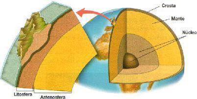 Admite-se que a Terra é constituída por três zonas concêntricas: crosta, manto e núcleo. A litosfera corresponde ao conjunto formado pela crosta terrestre (crosta continental e oceânica) e pela parte superior do manto superior.