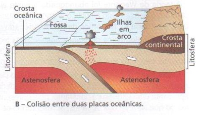 Se as duas placas que colidem são oceânicas, formam-se ilhas de origem vulcânicas.