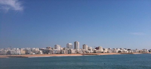 Figura 3: Quebra-mar do porto de pesca de Quarteira. Na primeira imagem vê-se o porto, onde foi realizada a entrevista e ao fundo o quebra-mar. Na segunda imagem vê-se a parte mais lateral desde porto. Como consequência, houve uma maior erosão a oriente das praias de Quarteira, o que criou a necessidade de se construírem mais estruturas de proteção, nomeadamente esporões. Tendo assim aumentado a área afetada por estes esporões.