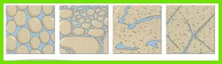 Poros e fissuras A capacidade de armazenamento de água na rocha vai directamente proporcional à quantidade de poros e fissuras nela existente.