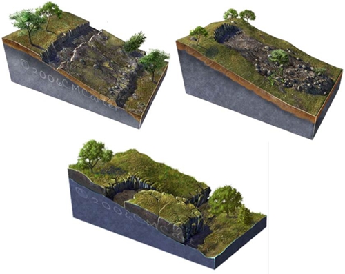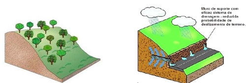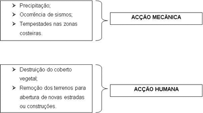 Fig.8: Processos erosivos decorrentes Ocorrência de sismos: Um sismo, também chamado de terramoto, é um fenómeno de vibração brusca e passageira da superfície da Terra, resultante de movimentos subterrâneos de placas rochosas, de actividade vulcânica, ou por deslocamentos (migração) de gases no interior da Terra, principalmente metano. O movimento é causado pela liberação rápida de grandes quantidades de energia sob a forma de ondas sísmicas.