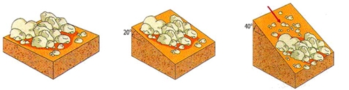 Figura 7 – Terreno muito Factores desencadeantes: São factores que resultam de alguma alteração introduzida na vertente. Contexto Geológico: A força de atrito numa vertente desempenha um papel importante, porque impede o deslocamento dos materiais. Esta força é controlada por alguns factores, como o grau de coesão dos materiais e o efeito de ancoragem que pode ser realizada pelo conjunto das raízes das plantas. E também a quantidade de água no solo pode ser determinante para criar instabilidade numa vertente. Principais factores desencadeantes: