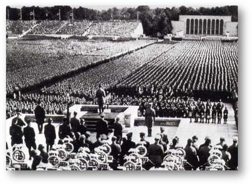 Fig.2:Crise económica de 1929 No plano político, a situação também era grave, pois vários golpes de direita e esquerda se sucederam, todos fracassados. A crise económica mundial de 1929 permitiu a ascensão ao poder do líder do partido Nazista, Adolf Hitler. Tomada de Poder pelos Nazis O partido Nazi teve um crescimento muito rápido, tanto em número de militares como de eleitores. Esse sucesso deveu-se sobretudo: . Áo apoio financeiro dos grandes industriais; . Á intensa propaganda através dos jornais e da rádio; . Á realização de comícios e de grandes manifestações de rua ; . Ás demonstrações de rua; . Ás demonstrações de força das suas disciplinadas milícias armadas, as SA (Secções de Assalto) e as SS( Secções de Segurança) , utilizadas contra os adversários do nazismo. Nas eleições de 1932, o Partido Nazi tornou-se o partido mais votado e como tal o Presidente da República decidiu nomear Hitler Chanceler (cargo equivalente ao de primeiro-ministro) da Alemanha. Hitler tomou imediatamente medidas antidemocráticas, tornou o Partido Nazi partido único e, a partir de 1934, passou a acumular os cargos de Presidente da República.