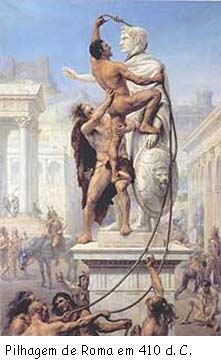 destruindo tudo à sua passagem, porém o império sobreviveu em 410 d. C.