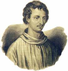 Fig.2 - Universidade de Pisa As suas descobertas científicas foram-se sucedendo, sem parar. De entre elas quero salientar, pela sua importância, as leis do pêndulo, a lei da queda dos corpos, a invenção da balança hidrostática, do termoscópio, entre outros, e a utilização do telescópio (apesar de não o ter inventado). Com este último instrumento, Galileu observou as crateras da Lua, as manchas solares, as fases de Vénus e descobriu quatro satélites de Júpiter. Foram as suas observações astronómicas que o levaram à demonstração da teoria de Copérnico que afirmava que a Terra girava em torno do Sol. Mas esta posição trouxe-lhe as primeiras divergências com a Igreja que defendia a teoria de que a Terra era o centro do mundo, girando o Sol em seu redor. Galileu era, nesta altura, por volta de 1616, o primeiro matemático da corte e foi obrigado a não divulgar as suas convicções sobre este assunto. No entanto, Galileu não resistiu muito tempo a esta pressão e, em 1632, apresentou aquela que se tornou a sua obra mais famosa, Diálogo sobre os dois sistemas do mundo, onde defendia a teoria do heliocentrismo. Esta tomada de posição custou-lhe um processo que lhe foi movido pela Inquisição e que o obrigou a desdizer-se publicamente, com 70 anos de idade, sob pena de morrer queimado na fogueira como herege. Segundo a lenda, no momento da negação, Galileu terá murmurado: "E, no entanto, ela (a terra) move-se ". Na sequência destes acontecimentos, a sua obra foi proibida e Galileu foi obrigado a retirar-se para uma herdade de que era proprietário. Apesar de estar proibido de contactar com o exterior, ali continuou os seus trabalhos e escreveu uma das suas obras mais importantes, Discurso sobre duas novas ciências que, só por si, faz com que Galileu seja considerado o fundador da física experimental. Ao contrário do que muitos pensam Galileu não foi queimado vivo, esse cientista tratou-se de Giordano Bruno (fig.3) que havia sido condenado à morte por heresia nos tribunais da Inquisição ao defender ideias semelhantes, em relação à astronomia. Galileu Galilei, morreu em Arcetri a 8 de Janeiro de 1642, rodeado pela sua filha Maria Celeste (fig.2) e os seus discípulos. Foi enterrado na Basílica de Santa Cruz em Florença.