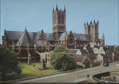 Catedral de Lincoln, Inglaterra Arte Gótica – a Arquitectura - Características Verticalismo: O verticalismo das edificações góticas enfatiza as transformações dos ideais estéticos, do gosto e do pensamento filosófico da época traduzidos no plano arquitectónico. Os mestres góticos desenvolveram técnicas, com o conhecimento das leis mecanicas e da resistência dos materiais, que permitiam cada vez mais a verticalização das construções (as flechas da Catedral de Estrasburgo chegam a 142 metros). Tais construções foram possíveis devido à utilização de abóbadas sustentadas por cruzarias ogivais e do arco quebrado em vez do arco de volta perfeita, além do emprego do arcobotante e dos contrafortes. Arco de Ogiva: Também conhecido como “arco quebrado”, é formado por dois arcos de círculo que se cortam em ângulo agudo. É o principal elemento da arquitectura gótica.
