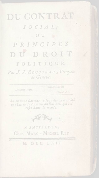 Introdução O documento histórico a ser analisado é um extracto, duma das maiores obras filosóficas de sempre : O contrato Social de Jean-Jacques Rousseau, 1762. As revoluções quer a nível religioso, com o calvinismo (na Inglaterra), quer a nível político com o parlamentarismo, influenciaram e serviram de ponto de partida para os pensadores franceses se questionarem acerca da política francesa fundada no Antigo Regime. Entre muitos, um dos grandes impulsionadores da ideologia de Rousseau, foi John Locke, este considerado o doutrinador da revolução inglesa e pai do individualismo liberal. Para Locke, os Homens têm direitos naturais, entre eles: a segurança, liberdade física e intelectual. A função da autoridade é então zelar pelo respeito desses direitos, assim sendo, a autoridade deriva do consentimento do povo (cidadãos) e existe para o bem-estar dos seus súbditos. Locke defendia que o poder deveria ser partilhado e delegado, sendo que o poder legislativo pertenceria ao parlamento (Parlamentarismo Inglês) e o executivo pertenceria ao Rei. Enquanto que para Rousseau, como é comprovado na analise do documento, o indivíduo cria o estado, o direito e a lei, permanecendo soberano e súbdito, com livre vontade e limitado ao mesmo tempo, ou seja, todos os associados dentro do Estado, aceitam e reconhecem como válidas, só as leis votadas pela Maioria. O poder que as vota (o legislativo) é o poder supremo do Estado. O poder do Rei “(...) só existe, para representar o Estado e velar pelo cumprimento das leis e a sua execução é regular a sua relação com outros estados (...)”(1) Outras influências deste filósofo foram Hobbes e Grocio que, já antes tinham falado do pacto social. O Contracto é claramente influenciado pelo Pacto Social. Biografia