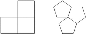 O pressuposto de construção que tem estado a ser utilizado é o de que a formação de um ângulo sólido no vértice de um poliedro só é possível se a soma das amplitudes dos ângulos internos dos polígonos adjacentes no vértce for inferior a 360º. Considerando o quadrado, e o pressuposto atrás enunciado, chegamos à conclusão de que apenas conseguimos construir o cubo. Com pentágonos, apenas conseguimos construir o dodecaedro.