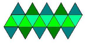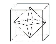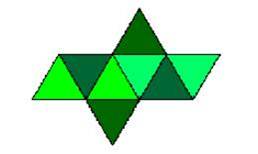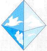 Octaedro: É um poliedro regular com 8 faces sendo estas triângulos equiláteros, 6 vértices e 12 arestas. O octaedro pode ser formado a partir de um molde com oito triângulos equiláteros.
