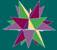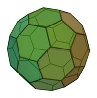 FIG 8: Icosaedro truncado (ou bola de futebol ou ainda a molécula do futeboleno C60) O Icosaedro truncado reencontrou novas e interessantes aplicações com a descoberta da molécula do futeboleno C60 (buckminsterfullereno ou buckyball) que foi comunicada num artigo da revista Nature, em 1985, por H. W. Kroto, J. R. Heath, S. C. O'Brien, R. F. Curl e R. E. Smalley. O primeiro e os dois últimos foram galardoados com o prémio Nobel da Química de 1996. Esta descoberta marca o início de uma nova área do conhecimento: a nanotecnologia. A molécula tem uma estrutura semelhante a uma bola de futebol. É constituída por 60 átomos de carbono, que formam 12 pentágonos e 20 hexágonos. Faz-se notar que se descobriu recentemente que muitos vírus, p.ex. o vírus da herpes, têm a forma de icosaedro! Aliás, a ligação entre a estrutura geométrica dos átomos e alguns sólidos já tinha sido referida pelo próprio Platão, por exemplo: o sal mineral, i.e. cloreto de sódio NaSl, aparece na forma de cristais cúbicos; floreto de cálcio CaF2 na forma de octaedro e a pirite, i.e. Disulfito de Ferro FeS2 na forma de dodecaedros. Os duais dos Sólidos de Arquimedes são designados por Sólidos de Catalan e a fórmula de Euler é válida para os poliedros convexos! Nota 2 Uma vez que todos os poliedros convexos estão classificados é natural perguntar se haverá poliedros convexos que não sejam regulares? Kepler, em 1619, descobriu dois poliedros que são simultaneamente regulares e não convexos: o pequeno dodecaedro estrelado e o grande dodecaedro estrelado. Dois séculos mais tarde provar-se-ia que existem apenas nove poliedros regulares: os cinco sólidos platónicos e quatro poliedros regulares não convexos - os Poliedros de Kepler-Poinsot. Um Poliedro de Kepler-Poinsot é um poliedro regular não convexo. Todas as suas faces são polígonos regulares iguais. E em todos os vértices encontram-se o mesmo número de faces (comparar com Sólidos Platónicos). Existem quatro Poliedros de Kepler-Poinsot: