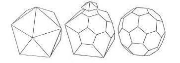FIG 7: Construção da bola de futebol a partir do Icosaedro Obtém-se assim a (moderna) bola de futebol: