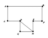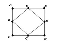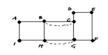 Neste grafo, os pontos B, C, G e H têm grau ímpar. Normalmente inicia-se num vértice ao acaso, e saltando sucessivamente para o seguinte acrescenta-se uma aresta quando se encontra um vértice de grau ímpar, até que todos os vértices tenham grau par. Aqui, a maneira mais eficaz de eulerizar o grafo é interligar os vértices de grau ímpar, e uma vez que são quatro, acrescentamos apenas duas arestas: B à C e H à G
