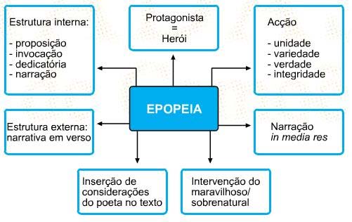 Ao analisarmos Os Lusíadas, e depois de conhecermos os elementos constituintes de uma epopeia, concluímos que Camões segue, em muitos aspectos, o modelo clássico apresentado. Protagonista: O herói dos Lusíadas é um herói colectivo e não individual, como nas antigas epopeias. O povo português é o protagonista desta epopeia, “o peito ilustre lusitano”, simbolicamente representado por Vasco da Gama que, ao narrar a história da pátria ao rei de Melinde, revela a heroicidade do seu povo. Acção: A acção d’Os Lusíadas é plena de heroísmo pois narra a descoberta do caminho marítimo para a Índia, um acontecimento com interesse universal. A acção d’Os Lusíadas apresenta quatro qualidades: - unidade: é um todo harmonioso. Todos os factos estão intrinsecamente ligados; - variedade: apresenta grande variedade de episódios (mitológicos, bélicos, líricos, naturalistas e simbólicos); - verdade: o assunto é quase na totalidade real, com alguns momentos de verosimilhança; - integridade: a narrativa pode ser dividida em três momentos determinantes: * introdução (Canto I, estrofes 1 a 18) * desenvolvimento ( Canto I, estrofe 19 a Canto X, estrofe 144); * conclusão (Canto X, estrofes 145 e 146 Narração: In media res (a meio da acção) No início da narração (estrofe 19, Canto I), a acção apresenta-se numa fase adiantada, in media res – “Já no largo Oceano navegavam”; mais adiante, através de uma analepse, narram-se os preparativos da viagem, as despedidas em Belém, o discurso do Velho do Restelo e a partida para a Índia (Canto IV). Maravilhoso: N’Os Lusíadas há a intervenção de entidades sobrenaturais pagãs, os deuses venerados na civilização greco-latina, que favorecem os portugueses – adjuvantes, como Júpiter e Vénus – ou os que prejudicam – oponentes, como Baco que se revela o principal opositor dos marinheiros. Trata-se do maravilhoso pagão. Há também súplicas feitas a Deus, à “Divina Providência”, um momento de demonstração da verdadeira fé cristã. Trata-se do maravilhoso cristão. Estrutura interna: Os Lusíadas dividem-se em quatro partes: - Proposição: o poeta expõe os seus objectivos (Canto I, estrofes 1 a 3); - Invocação: Camões pede inspiração às Tágides (Canto I, estrofes 4 a 5); - Dedicatória: o poeta dedica a obra ao rei D. Sebastião (Canto I, estrofes 6 a 18); - Narração: a acção é iniciada in media res (Canto I, estrofe 19 até ao fim). Estrutura externa: O poema está dividido em 10 Cantos, com o total de 1102 estrofes. As estrofes são oitavas, o verso é decassilábico, predominando o verso heróico. A rima é cruzada nos seis primeiros versos e emparelhada nos dois últimos: abababcc. Considerações do Poeta: Camões faz algumas intervenções, sobretudo no início e no final do poema, mas são reduzidas. Conclusão Camões para mim é o maior símbolo que a nação portuguesa pode ter, constitui a síntese da grandeza do nosso país, da sua imensidade, particularmente da língua Portuguesa. Camões viveu durante o auge de todo o império Português, o que contribuiu para o enaltecimento do povo Lusitano, utilizando o poeta para isso a sua habilidade nata e inigualável. Particularmente aprecio em Camões a sua personalidade poética, por esta ser de uma imensidade expendida, apesar de me recusar a enaltecer a sua personalidade humana, isto é, a sua vida boémia e despreocupada; mas por vezes é no seio de uma vida deplorável que nascem muitos génios. Além do seu retrato ao povo Português, dou um grande apreço as suas tentativas de enunciar o Amor, sentimento considerado bastante paradoxal pelo escritor. Acredito profundamente que este mítico poeta irá ser relembrado constantemente através das várias gerações Lusitanas e estrangeiras, porque afinal foi ele quem nos visualizou o melhor lado do povo da Ocidental Praia Lusitana: aventureiros que nunca desistem. Bibliografia http://www.davefm.com/home/images/ImageLibrary/RealImage/2009/6/800d8df3-cf43-4205-8eb5-10fa099bf83f.jpg http://pt.wikipedia.org/wiki/Camões http://pt.wikipedia.org/wiki/Os_Lusíadas http://pt.wikipedia.org/wiki/Descobrimentos_portugueses http://pt.wikipedia.org/wiki/Renascimento