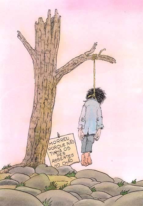 • Pretende Criticar *Todos os que se matavam. * Critica subjacente ao alto-funcionário público (das finanças) que o enganou, pois disse que ele só tinha duas soluções: ir para o paraíso (suicidar-se) ou ir para a prisão (ser preso). * A pena de Morte.