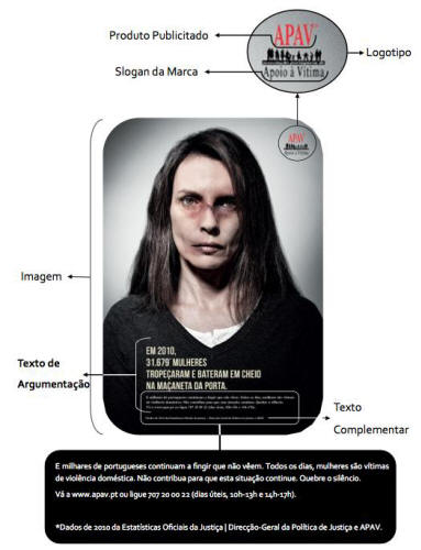 Análise APAV  Ironia “Tropeçaram e bateram em cheio na maçaneta da porta” Na realidade todos sabemos o que aconteceu a estas senhoras, foram espancadas.  Apelo e incentivo “Não contribua para que esta situação continue”; “Quebre o silêncio” Este apelo não é apenas destinado às vitimas, mas também aos que as rodeiam e têm conhecimento da violência exercida, pois, infelizmente, hoje em dia, ainda existem muitas mulheres incapazes de denunciar a prática.  Dados “31.679 mulheres” Utilizados com o objectivo de chocar e chamar à atenção para o problema retratado.  Imagem É uma imagem em tons escuros, em que predominam o cinzento e o preto, que nos remete à tristeza, solidão, desespero, mágoa ou depressão. Observamos uma senhora, claramente, agredida, indefesa e com ar deprimido.  Frases imperativas “Não contribua para que esta situação continue”; ”Quebre o silêncio” Utilizadas, com o objetivo de incentivar o público à entreajuda.  Conjunções/Locuções . “E milhares de portugueses continuam a fingir que não vêem” E: Conjunção coordenativa copulativa/aditiva. Esta conjunção remete-nos ao sentimento de repugnância.  . “31.679 mulheres tropeçaram e bateram em cheio na maçaneta da porta” E: Conjunção coordenativa copulativa/aditiva Esta conjunção chama à atenção ao contraste entre o significado da frase e a realidade das vítimas.  Objectivos do anúncio O anúncio publicitário não tem intuitos comerciais. Este pretende apenas, a divulgação da informação e da associação (APAV), a sensibilização e a denuncia, de modo a acabar com esta grande cobardia, a violência doméstica. __________________________________ Outros Trabalhos Relacionados | Ainda não existem outros trabalhos relacionados | |