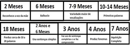 Ilustração 1. Evolução da Linguagem Contudo, cada criança progride conforme o seu próprio ritmo, pois as aquisições seguem mais ou menos a mesma ordem, mas a velocidade dos progressos varia muito. No estádio pré-operatório, que decorre entre os 2 e 7 anos, a criança já consegue usar a inteligência e o pensamento. No que toca à linguagem, a partir desta idade dá-se uma enorme evolução a este nível, adquirindo imensas palavras (com dois anos compreende entre 200 a 300 palavras aproximadamente, e com cinco anos cerca de 2000). Esta evolução necessita obviamente de um acompanhamento por parte dos pais ou dos criadores. As crianças têm de ser estimuladas diariamente. Verificamos este ponto mais à frente. Problemas de linguagem Os atrasos de linguagem não têm todos a mesma origem ou a mesma evolução. Pode haver diversos tipos de problemas relacionados com a linguagem de uma criança. Problemas articulatórios que afectam a produção oral de uma palavra; problemas da fala, ou seja na colocação da língua em palavras (realização oral) e os problemas de linguagem, onde pode existir uma “lentidão dos progressos”-[1], fazem assim progressos mínimos num longo espaço de tempo. Por vezes os problemas de linguagem têm causas directas, por exemplo, problemas auditivos graves, défices neurológicos provocados por lesões cerebrais, problemas graves de personalidade ligados ao autismo infantil ou certas psicoses. Linguagem e classes sociais Vários investigadores têm debatido sobre este problema e afirmam que as crianças de meios desfavorecidos demonstram atrasos e desvantagens linguísticas evidentes em relação a crianças de classes médias. Isto comprovou-se devido a vários estudos que mostram que o desenvolvimento linguístico (oral e escrito) das crianças menos favorecidas é deficitário e que as pronúncias incorrectas mantêm-se durante mais tempo. Qual a importância da linguagem para o desenvolvimento do ser humano? Sendo a linguagem definida como uma ferramenta de comunicação do ser humano para interagir com o mundo e consigo próprio através de símbolos verbais e acústicos, a sua aquisição é essencial no sentido em que: primeiro permite o estabelecimento da comunicação entre os familiares/ cuidadores e o bebe, para que este possa desenvolver competências de linguagem e, segundo, o estabelecimento da comunicação entre o bebé e o mundo exterior de modo a que os seus cuidadores possam perceber as suas necessidades. Deste modo, temos dois pontos muito relacionados com o desenvolvimento humano, a partir do desenvolvimento da linguagem: a estimulação por parte do meio e a compreensão das necessidades do bebe pelos seus cuidadores.