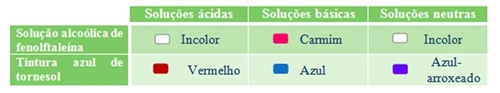 1. Objectivo do trabalho . Estudar as reacções ácido-base. . Observar como varia o pH de uma solução ácida, à medida que se lhe adiciona uma solução básica. 2. Introdução teórica Muitas das substâncias que nos rodeiam dissolvem-se bem na água. As soluções que se obtêm podem ser: ácidas (ex. limonada), básicas (ex. limpa-vidros) ou neutras (ex. água açucarada). Para se saber o carácter químico de uma solução, recorre-se a substâncias chamadas indicadores de ácido-base. Algumas destas substâncias mudam de cor na presença de soluções ácidas, outras na presença de soluções básicas. Os dois indicadores mais utilizados são a tintura azul de tornesol e a solução alcoólica de fenolftaleína que adquirem as cores representadas no esquema seguinte: