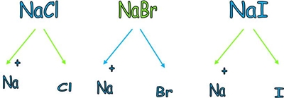 Os átomos dos halogéneos transformam-se facilmente em iões mononegativos, pois, ao captarem um electrão, adquirem uma nuvem electrónica mais estável, semelhante à do gás nobre do mesmo período.