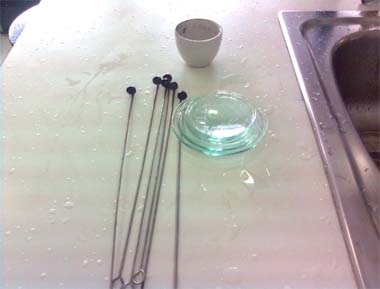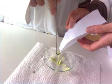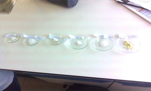 4-Depois, fomos colocando os diferentes tipos de cloretos em vidros de relogios separados.