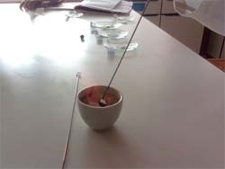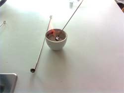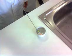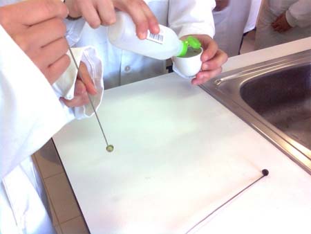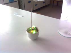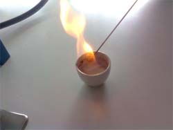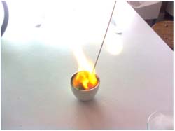 6-Introduzimos na ansa de inoculação a primeira amostra sólida pulverizada a estudar e levámo-la à zona mais quente da chama.