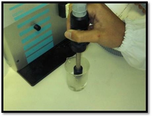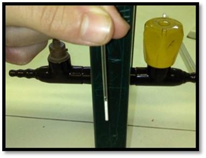 Primeiramente, deve fazer-se tal como nos indica a figura à esquerda. Em seguida, devemos colocar o capilar (voltado para cima) num tubo de vidro e deixá-lo cair (repetindo até que o