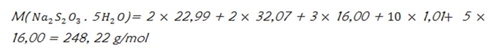 Tabela 1 – Tabela de variáveis do Tiossulfato de Sódio penta-hidratado necessárias á solução.