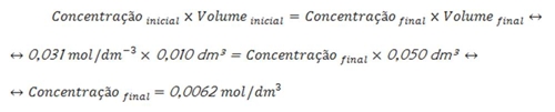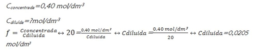 0.2. Cálculo da concentração da solução diluída preparada em B.