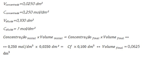 4. Dilui-se uma solução de KCl de concentração 0,40 mol/dm3 para preparar uma solução mais diluída.