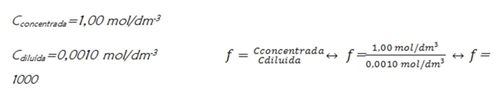 3. Para obter uma solução de 0,0010 mol/dm³ a partir de uma solução 1,00 mol/dm3, qual deve ser o factor de diluição?