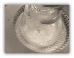 O sal no fundo do balão onde de executou a destilação. (Foto tirada no fim do processo de destilação)