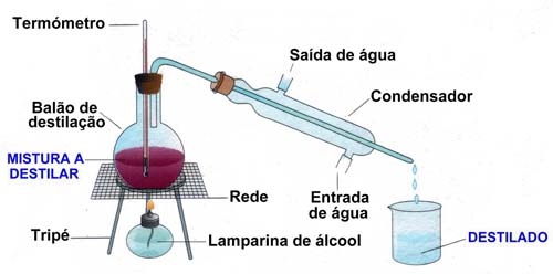 separados por meio de um destilador. Ferve-se uma solução formada por