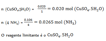 Quantidade química de [Cu(NH3)4.H2O]prevista Pela estequiometria da reação: