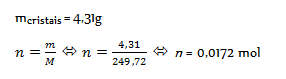 Quantidade química de [Cu(NH3)4.H2O] obtida