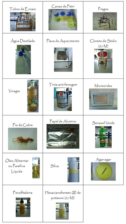 Procedimento Experimental 1. Preparou-se um conjunto de amostras de pregos de ferro e de aço em diferentes condições: a) Pregos intactos; b) Pregos dobrados; c) Pregos com risco à superfície; d) Pregos pintados, com e sem riscos na pintura; e) Pregos enrolados em fio de cobre e papel de alumínio.