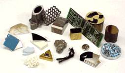 Fig. 4 Bio Vidros Dentre os diversos biomateriais desenvolvidos, actualmente, existem os biovidros sintetizados para ter comportamento fisiológico específico como material constituinte de próteses ou como material de preenchimento para reparação de defeitos ósseos. Devido à resposta da superfície activa destes tipos de materiais, eles foram aceites como biomateriais bioactivos. Diversas composições de biovidros foram preparadas por Hench e colaboradores à base de SiO2, Na2O, CaO e P2O5, em diferentes composições, e são conhecidas por serem altamente bioactivos, e têm sido usados em clínicas como preenchedor ósseo de cavidades e como substituto de massa óssea perdida em determinados traumas. Esses biovidros são indutores de formação de trabéculas no osso (pequenas porções de tecido ósseo denso e modelado) e de partes completas de osso em algumas regiões. As primeiras formam-se num período de 2 a 7 dias, enquanto as segundas se formam num maior período de tempo. A conexão osso/implante é possível devido a uma propriedade presente nos biovidros denominada osteoindutora, que facilita a regeneração óssea. Entretanto, análise qualitativa e quantitativa de ensaios in-vivo na geração de ossos são importantes para se estabelecer se as características deste material permitem que este seja biocompatível com o corpo humano. Esses biovidros perdem iões sódio para o meio e formam um filme superficial rico em SiO2, o que provoca a formação de uma camada de gel de fosfato de cálcio, inicialmente amorfo e que gradualmente evolui para uma camada policristalina de aglomerados de apatita. Neste processo ocorrem ligações químicas entre a superfície vítrea e o tecido ósseo recém-formado na região de intervenção cirúrgica. Estas ligações entre as partículas de biovidros e os fluidos dos tecidos vizinhos resultam na formação de uma sílica gel, a qual é coberta rapidamente por uma camada rica em cálcio-fósforo Devido à resposta da superfície activa destes tipos de materiais, eles foram considerados biomateriais bioactivos. UM-W é tipo de biovidros que une espontaneamente o osso vivo sem formar o tecido fibroso em redor. Um vidro-cerâmico bioactivo também desenvolvido foi o Bioverit® também foi desenvolvido e contém apatita e Flogofite ele é usado em aplicações clínicas como vértebras artificiais. Zircónio Zircónio é um elemento químico de símbolo Zr de número atómico 40. A fórmula química do óxido de zircónio é ZrO2. Esse óxido existe na natureza na forma de um mineral raro, chamado baddeleyíta. Existe, porém, óxido de zircónio artificial, que tem a mesma composição química, mas apresenta uma estrutura cristalina cúbica. Os implantes cerâmicos de ZrO2 tiveram uma ascensão controversa pois havia certas características que a tornavam pouco viável, entre elas, a degradação em lubrificantes de água e influência na fricção e desgaste por longo uso. Um dos fabricantes actuais de cabeças femorais de ZrO2 melhorou este óxido convencional, conduzindo-o a uma maior resistência a todos os níveis. Hoje em dia as principais aplicações da cerâmica de óxido de Zircónio são ao nível dos implantes ortopédicos mais propriamente da cabeça do fémur. Teste realizados mostraram que o uso de copos acetabulares de UHWMPE são mais eficazes em cabeças femorais de ZrO2 do que em cabeças da liga Co-Cr, uma vez que provoca menos desgaste a este polietileno. Também ao nível da medicina dentária ZrO2 é amplamente utilizado em pontes, coroas e para brackets ortodônticos.