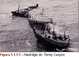 1.1.1. Marés negras históricas A primeira maré negra de grandes dimensões foi o naufrágio do petroleiro Torrey Canyon, no Canal da Mancha, em 1967. Foram libertadas mais de 100 mil toneladas de crude que afectaram cerca de 180 quilómetros de praia.