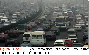 O-H fortes. Por vezes, em condições pouco eficientes, desta combustão resultam outros gases, como por exemplo o monóxido de carbono, os óxidos de azoto (NOx) e o dióxido de enxofre. Este problema pode ser resolvido pela utilização de câmaras de combustão bem vedadas e evitando a contaminação dessa câmara por lubrificantes. O azoto é o gás mais abundante da atmosfera terrestre e é uma molécula extremamente estável, devido à sua ligação tripla, por isso é quase inerte. Todavia, nos motores de combustão, devido às descargas das explosões do combustível, existe energia suficiente para quebrar essa ligação tripla. O mesmo acontece com as moléculas de oxigénio, formando radicais de oxigénio, que vão reagir com os radicais de azoto, originando óxido de azoto, que posteriormente é oxidado a dióxido de azoto, segundo as equações químicas: N (g) + O (g) → NO (g) 2 NO (g) + O2 (g) → 2 NO2 (g) A maior parte dos combustíveis contém enxofre na sua constituição que vai reagir com moléculas de oxigénio presentes no ar, formando dióxido de enxofre, como é descrito na seguinte equação: S (g) + O2 (g) → SO2 (g) O carbono presente nas moléculas de CO provém dos hidrocarbonetos (HC) assim como o carbono presente no CO2 libertado. O carbono reage com os radicais de oxigénio mencionados anteriormente, originando CO, pela equação química: C (g) + O (g) → CO (g) 1.2.2. Acção dos produtos da combustão no ambiente A presença em elevadas quantidades na atmosfera dos produtos de combustão dos combustíveis fósseis causa efeitos prejudiciais em todos os seres vivos do planeta.