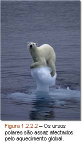 Uma vez que a Terra fica mais quente, as calotes polares começam a derreter, habitat de muitos seres vivos, pondo em risco, por isso, a sua existência. Previsivelmente, este fenómeno irá causar uma subida do nível do mar e, provavelmente, a submersão das cidades litorais.