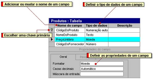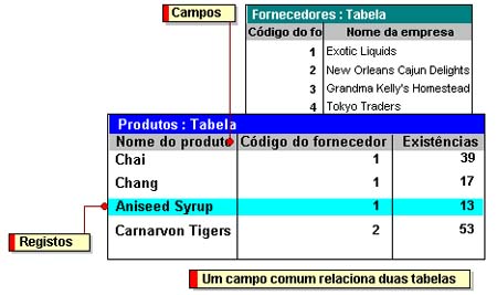 Fig.3 Estas tabelas relacionam Fornecedores e Produtos. Fonte: http://civil.fe.up.pt/acruz/access/(05/05/2009) Na vista de Estrutura da tabela, pode-se criar uma tabela completa desde o inicio ou adicionar, eliminar ou personalizar os campos de uma tabela já existente, como se mostra de seguida: