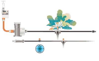 Figura 2. Sistema de Rega gota-a-gota construído ao nível do solo( in Plantalegre, Produção e Comércio de Plantas,LDA)