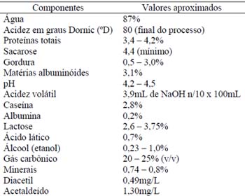 Segundo os dados de Souza et al (1984), o Kéfir é composto maioritariamente por água (87%), como se esperaria, e tem na sua composição 3,4 a 4,2% de proteína (ver tabela [3]), sendo que boa parte desta é de alto valor biológico, pois possui na sua composição uma vasta gama de aminoácidos essenciais [4].