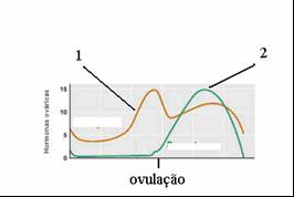 a) Na figura A, qual o fenómeno indicado pelo número 1? b) Na figura B, indica quais as hormonas que correspondem às variações representadas pelas linhas 1 e 2.
